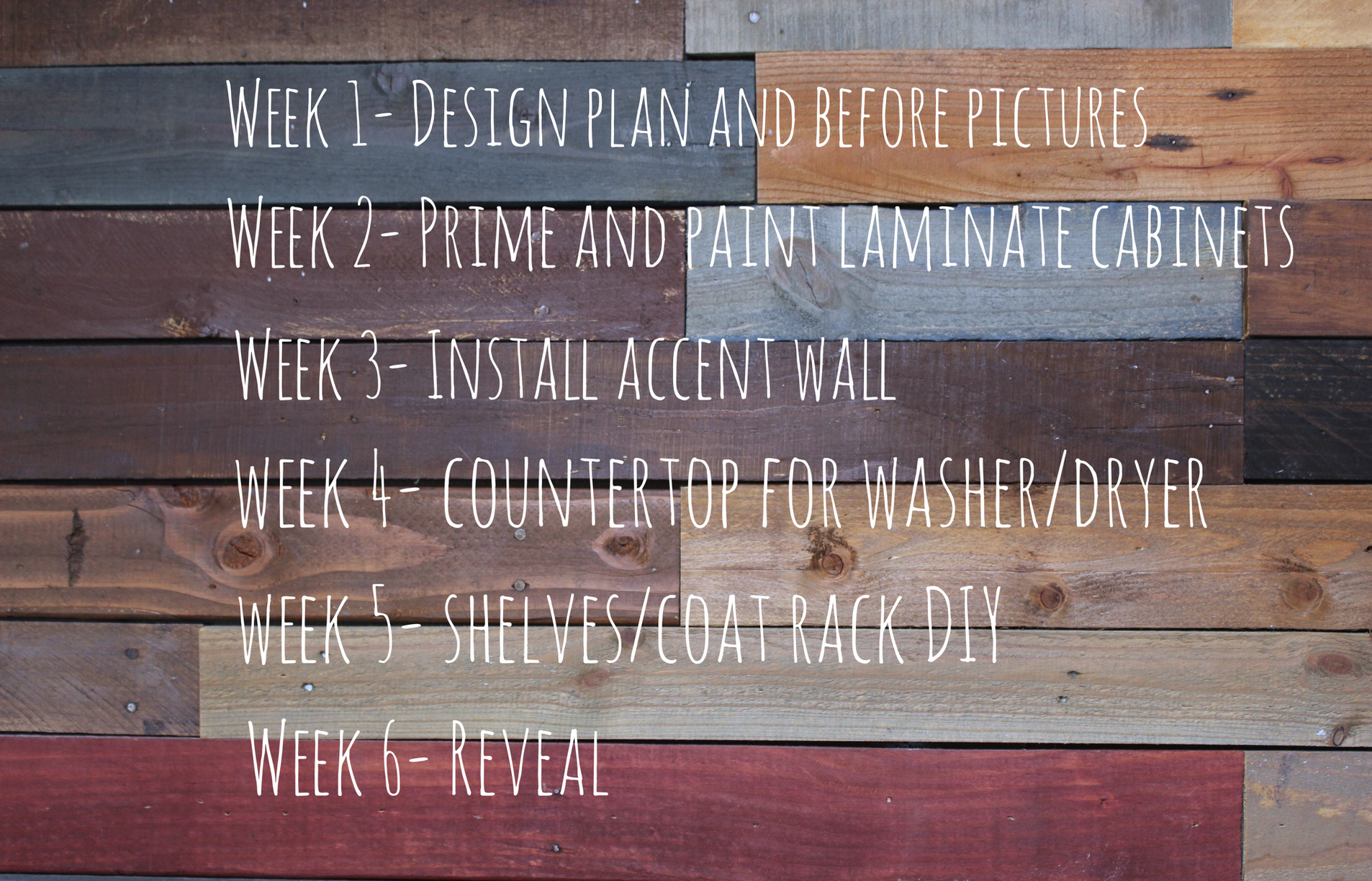 Here is how I hope to schedule the time. I am just a little worried as all the DIY will have to be done on the weekends as we have regular jobs and all. The cabinets are laminate and I have my fingers crossed that my guy at my local Sherwin Williams store has not steered me wrong on how to paint them myself.